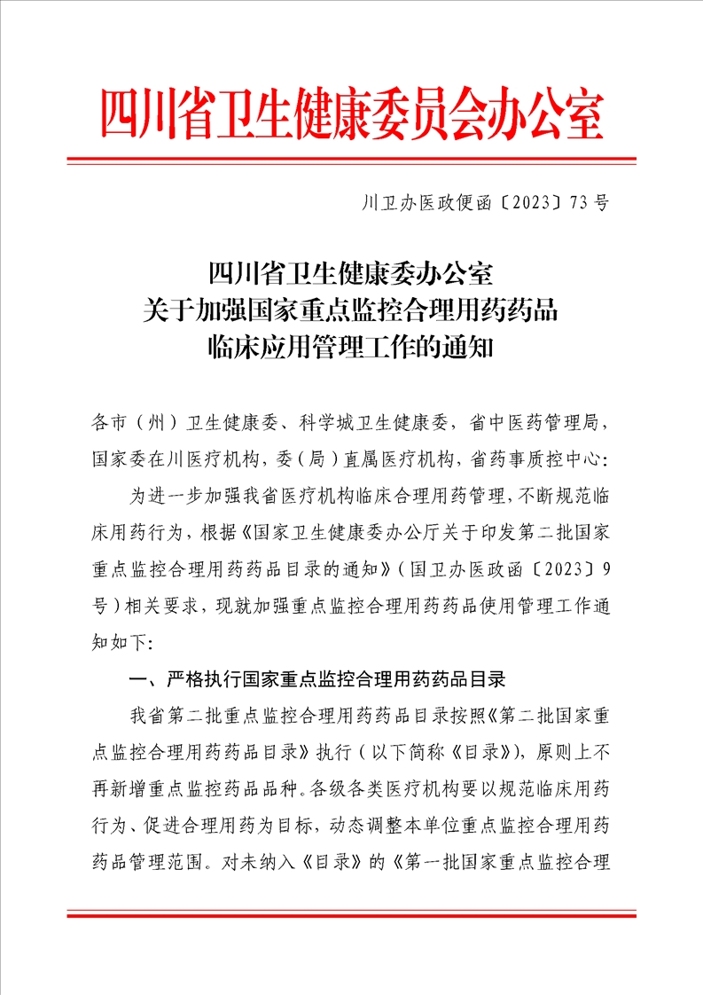 转发四川省卫生健康委员会《关于加强国家重点监控合理用药药品临床应用管理工作的通知》