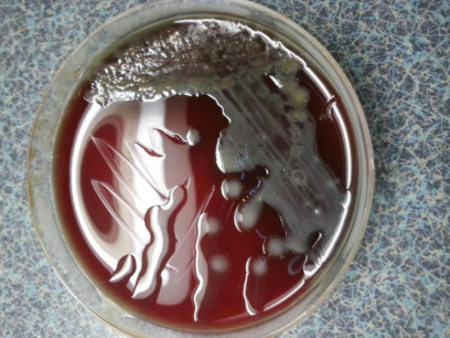 在血琼脂培养基上可形成不同形态的菌落,典型菌落为灰绿色,大小不一,扁平湿润,边缘不规则,呈伞状伸展,表面常可见金属光泽,这种光泽通常与菌落的自溶有关。它还可以出现其他菌落形态,比如光滑、黏液性和侏儒菌落(又叫小菌落变异型),其中黏液性菌落变异型在囊性纤维化患者的呼吸道标本中特别常见。