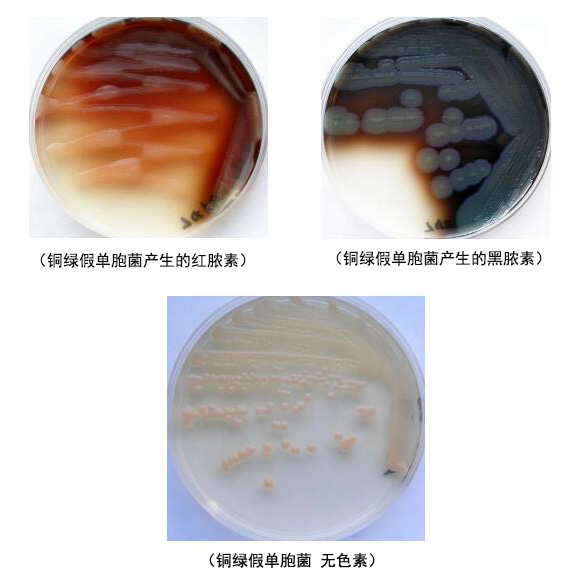 铜绿假单胞菌在普通琼脂培养基上有典型的生姜气味,可产生多种色素,主要为绿脓素和荧光素,从临床标本中分离的菌株约有80%-90%可产生绿脓素和荧光素。