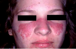 攻击皮肤则导致面部“红斑”及皮疹、脱发、光过敏;