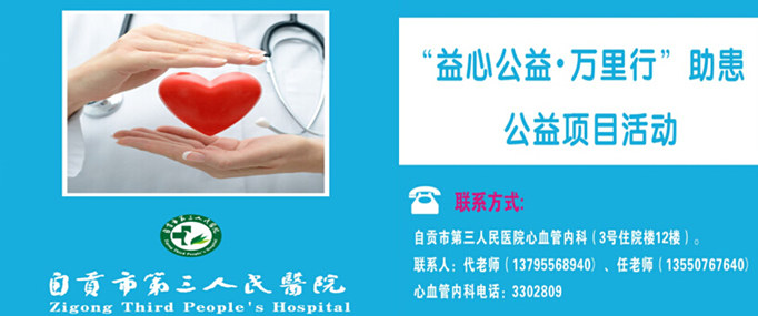 广大贫困冠心病患者:现我院正携手“益心公益·万里行”项目开展医疗救助活动,您可免费在我院门诊进行初查,如果符合活动规定的手术条件,我们将免除手术支架、球囊及一定的医疗费用,让您血管再通,重获新生,详情请致电了解。