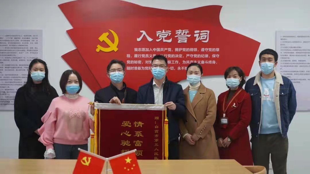 11月18日上午,自贡市第三人民医院收到一面来自富顺县凯旋城临时党支部及小区全体居民赠送的鲜红锦旗。“情系富顺勇担使命,爱心驰援尽显真情。”这是富顺人民对医院同心抗疫、彰显大爱的褒奖,更是对白衣天使挺身而出、逆行而往的赞扬!