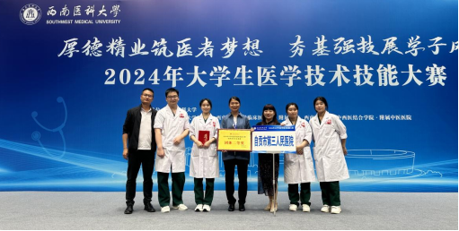 近日,由西南医科大学主办的2024年大学生医学技术技能大赛(临床医学赛道)在青年体育中心举办,共计38支参赛队152名学生参加比赛。自贡市第三人民医院实习生代表队斩获西南医科大学2024年大学生医学技术技能大赛团体二等奖、换药术单项奖。