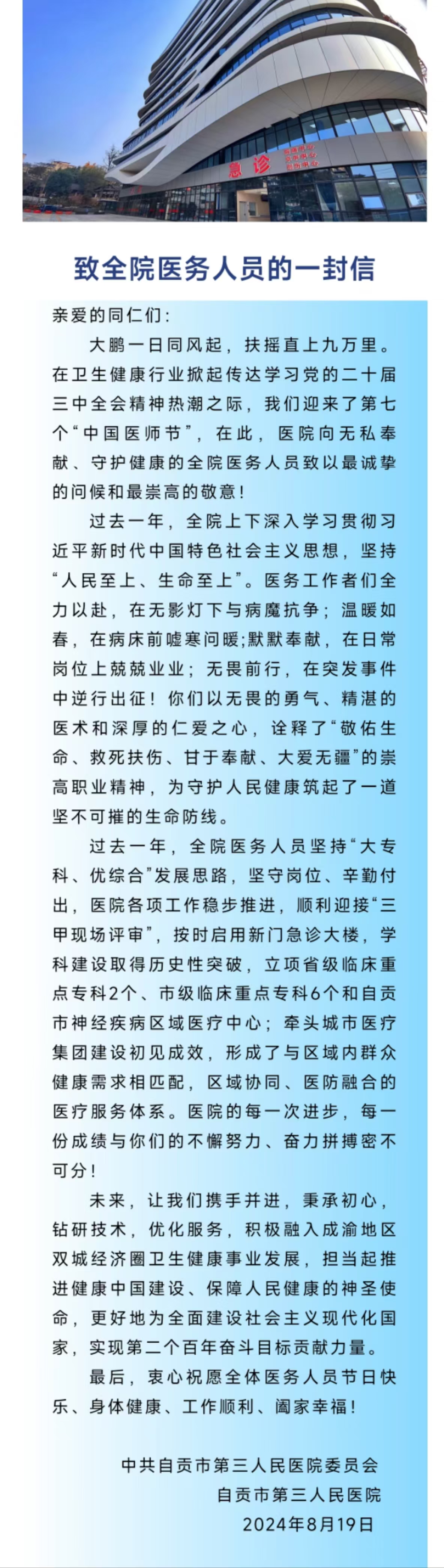 崇尚人文精神 彰显医者仁心 致全院医务人员的一封信!