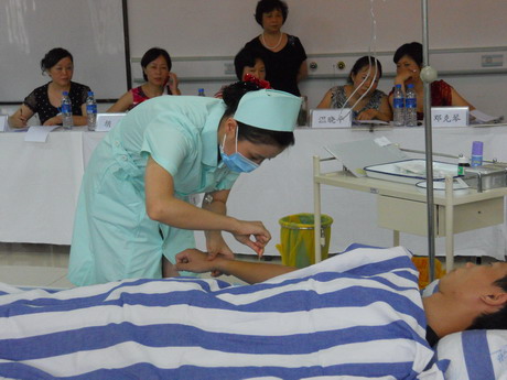 本次比赛按照二甲及以上、二甲以下的医疗卫生单位分别进行。比赛项目分临床护理“静脉留置针”、重症护理“心电监护仪使用”、儿科护理“新生儿心肺复苏”。自贡市三医院根据自贡市总工会、自贡市卫生局《关于举办2012年全市护理岗位创新技能大赛通知》精神和《自贡市护理岗位项目竞赛工作方案》要求,积极组织全院护理人员开展技术练兵,选拔优秀选手参加技能大赛。赛前训练期间,正值高温酷暑时节,参赛选手克服困难,对照比赛项目标准,认真学习、领会标准,一丝不苟刻苦训练,每天练得汗流浃背、口干舌燥,辛勤的付出在赛场上得到了充分体现和回报,自贡市三医院选手以良好的心态、准确的细节把握、灵巧的动作和稳定的临场发挥得到了评委的一致肯定和全场观众的喝彩,展现了三医院护理人员的技术水平和独特风采。