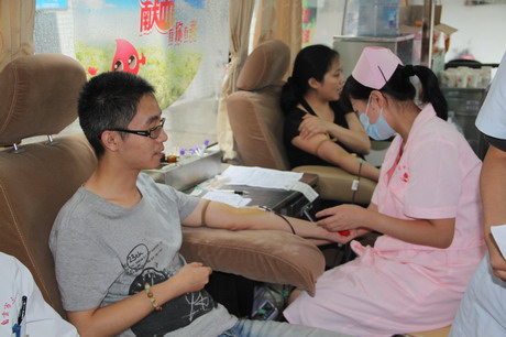 8月31日上午,天空下着沥沥小雨,秋风透着丝丝凉意,但却挡不住自贡市三医院职工火热的爱心,他们从各个岗位赶到医院献血点参与献血活动,他们中有多次献血的医务人员,有今年才刚踏上工作岗位的新职工;有的才下夜班还没有回家,有的专程从医院济慈医疗部赶来……虽然第一次献血的新职工有些胆怯,但在大家的鼓励下,他们卷起了袖子,伸出了手臂,奉献爱心的快乐使他们战胜了恐惧,看到一股股殷红的鲜血流出的场景,不由使人想起“只要人人都献出一点爱,世界将变成美好的人间”这句歌词。