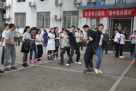 9月27日下午,自贡市三医院办公楼老黄桷树下人声鼎沸,热闹非凡,医院“迎中秋庆国庆”职工运动会激烈进行着。