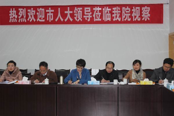 李主任等市人大领导一行到医院后首先实地察看了住院大楼建设工地,听取医院领导汇报,了解工程进展情况。在随后的座谈中,张培森院长简要汇报了医院近年加强人才队伍建设,重点专科建设,基础设施建设,成功建成“三乙”医院,以及目前正在实施的调整医院总体发展规划,提升服务能力创建“三甲”医院等工作情况,重点汇报了医院开展对弱势群体的医疗救助、面临的问题和具体建议。