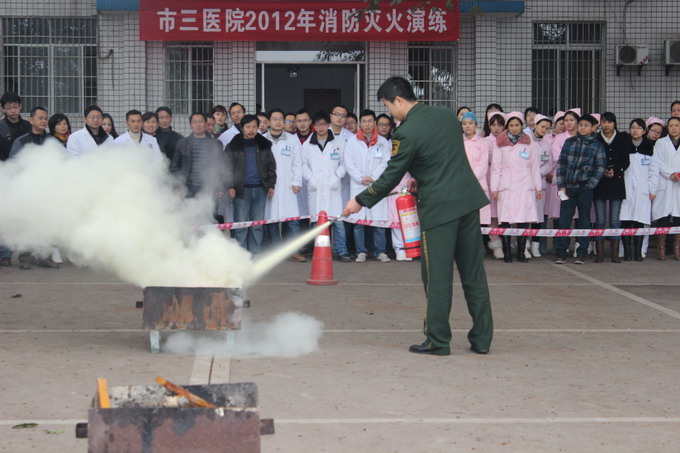 当日上午9点半,贡井消防二支队的教官给职工讲解了消防灭火的要领及消防安全知识。随后,在医院黄桷树空地上,教官对灭火器的使用进行了详细的讲解和演示。在教官的指导下,职工们面对熊熊的燃烧的火焰,由胆怯到临危不乱认真按照操作规则、动作要领及步骤,反复练习灭火器的操作。