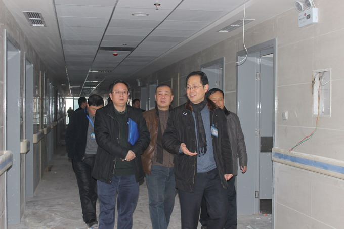 在自贡市三医院住院大楼室内外装修工作进入收官阶段的关键时期,自贡市卫生局丁中印副局长在新年元旦放假上班后的第二天便亲临医院,检查指导助推住院大楼建设工作。