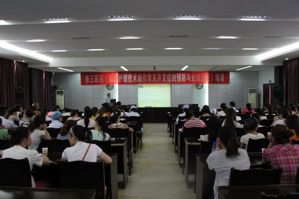 自贡市三医院为进一步提高临床护理技术操作技能,有效预防与正确处理临床常见并发症,于8月27、28日对全院护理人员集中进行了有关《临床护理技术操作常见并发症的预防与处理规范》(简称《护理规范》)培训。