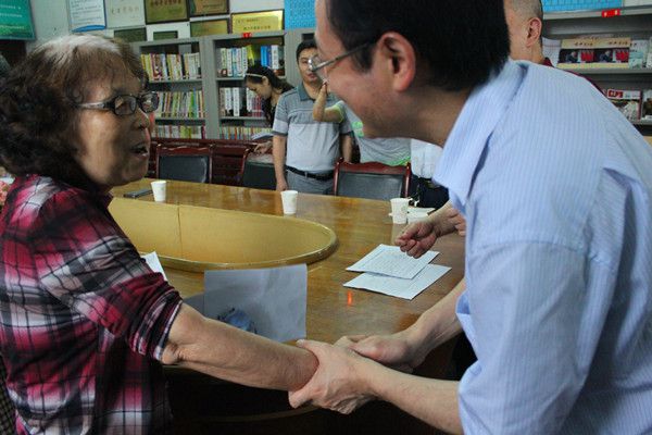 在该社区领导的协助下,自贡三医院领导及党支部书记与对口帮扶的困难户、老党员齐聚一堂座谈,社区群众对医院领导的关心表示真诚的感谢。医院领导表示,将借助“三联三服务”工作这个平台,努力践行党群众路线,发挥医院的特长和优势,把帮扶工作做好,让群众真正感受党的其群众路线教育实践活动带来的实惠。困难群众廖婆婆和困难老党员刘婆婆说道动情处,眼含热泪不住地致谢。医院领导、各党支部书记与帮扶的困难户面对面的亲切交谈,了解他们的实际困难。行政党支部帮扶的困难群众林某因骨折没能来,在社区领导的带领下,支部李书记和党群办的同志又一起冒雨赶到其家中看望和慰问,令林某非常感动,连声道谢。