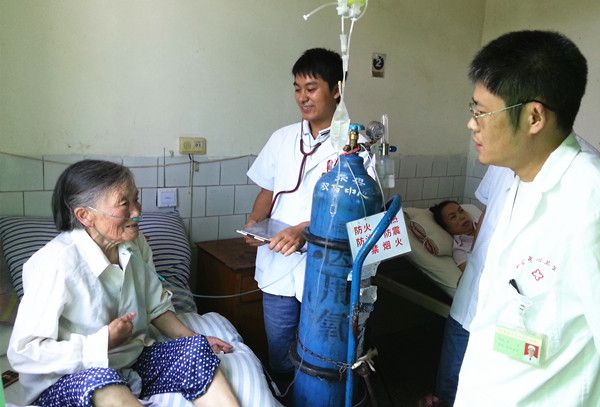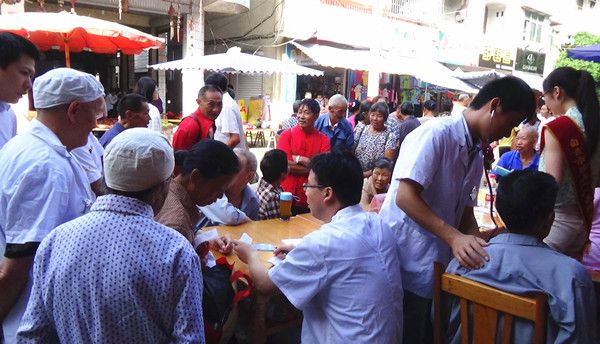 医疗服务队一行8人清晨一早赶到双古镇,在双古镇中心卫生院领导的大力协助下,医务人员迅速展开工作。时逢当地赶场,闻讯而来的群众急切地等着向医务人员询问,医务人员免费为他们进行了常规检查和测量血压,进行健康指导。在前来看病的群众中还有一位百岁老人,其家属说老人因为年事已高,出门不方便,今天遇到有专家为她看病,心里非常高兴和感谢。医院志愿者还将感冒类药和健康宣传资料赠送给广大群众,当医疗服务队离开时,在场群众还一直问何时再来?