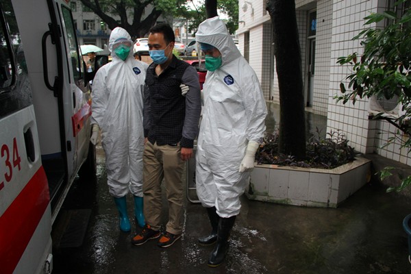 演练根据医院《埃博拉出血热应急预案》,模拟一名前不久从非洲务工回本市的成年男性,因高热、头痛、咽喉痛、乏力等症状到医院就诊,最终诊断为“疑似埃博拉出血热患者”,以及转运至自贡市传染病医院的过程,以检验参演人员在预检分诊、接诊流程、会诊转运、流行病学调查、现场采样、登记报告、消毒隔离及医务人员自身防护、药械物资储备、设备维护、后勤保障等环节是否规范、及时、有效。演练结束后,相关考核人员对所负责的环节进行了小结,演练总指挥黄文良副院长在对整个演练过程进行总结、点评后强调,防控埃博拉出血热关键是要加强发热门诊的预检,尤其要对发热病人近期是否去过非洲等疫情区要详细询问,以及时发现并排查疑似病例。