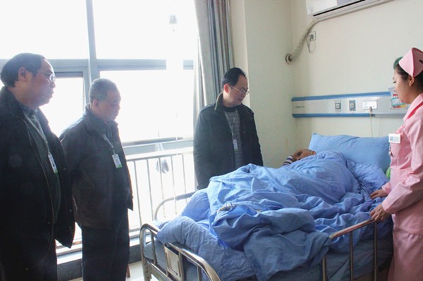 在院长张培森、党委书记杨釜、工会主席谢大春及副院长黄文良、徐海荣的带领下,党政工团、人事、监审等部门负责人在除夕前夕,看望了生病住院职工、困难职工、离退休职工,为他们送去节日祝福和慰问金;在除夕当天,慰问了全院各科室及窗口部门的工作人员,为他们送上糖果和春节的祝福。每到一个病区,院领导们都详细询问了春节期间医疗护理、后勤保障等情况,希望大家在繁忙的工作中保重身体,同时勉励值班人员在春节期间确保医疗安全,牢记纪委要求,廉洁行医。