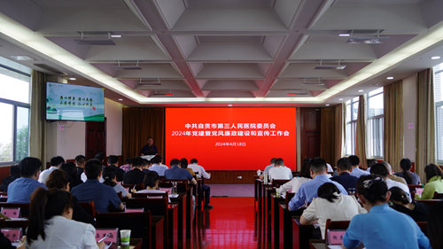 4月18日下午,市三医院召开2024年党建暨党风廉政建设和宣传工作会,全面总结2023年党建、党风廉政建设和宣传工作,安排部署2024年工作任务。医院领导班子成员、党(总)支部书记、中层干部110余人参会。
