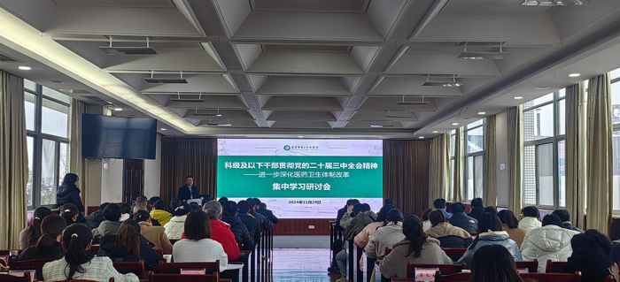 为深入学习贯彻党的二十届三中全会精神,进一步深化医药卫生体制改革,切实推动医院高质量发展取得新突破。11月29日下午,市三医院组织开展“学习贯彻党的二十届三中全会精神——深化医药卫生体制改革”集中学习研讨会,院党委书记黄康主持会议,院领导班子、党总支书记、党支部书记及中层管理干部100余人参会。