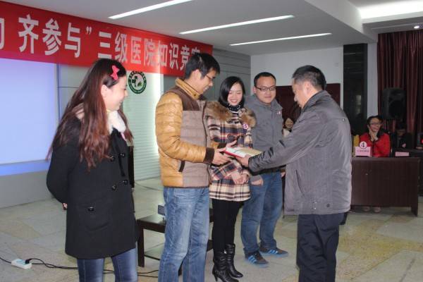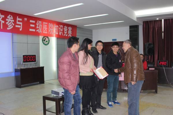 12月18日下午,寒冷的冬日挡不住自贡三医院职工的创建热情,当日下午,医院报告厅不时伴着阵阵掌声和欢呼声,医院“学标准、践行动、齐参与”创建三级医院知识竞赛高潮迭起,6个片区的24名职工组成的6支参赛队伍激烈角逐,你追我赶,奋力拼搏,经过必答题、抢答题等环节的角逐,行政后勤片区代表队获得一等奖,联科、外科等片区代表队分别获得二、三等奖。