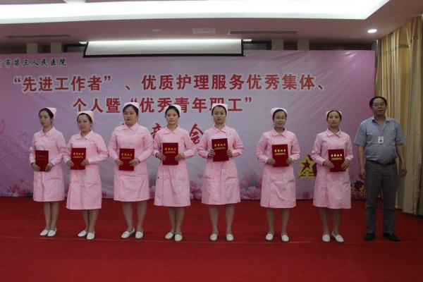 激情五月,星光灿烂。5月11日下午,自贡市三医院3号楼会议厅喜庆热烈,医院在“5 · 12”护士节来临之际举行了“先进工作者”、“优秀青年职工”、“优质护理服务明星”、“优质护理服务优秀病房”表彰大会。