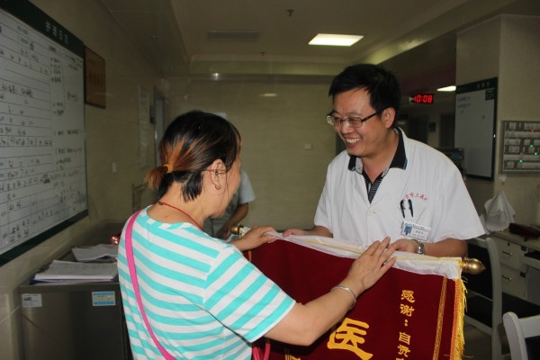 “我们从来没见过服务态度这么好的医生,把病人当亲人,作为病人家属,我们深受感动!”6月29日,普外科患者夏某的妻子万女士将一面写有“医术精湛,热情似火”的锦旗送到了自贡市三医院党委办公室。万女士说,丈夫在普外科住院期间,得到了该科室全体医务人员的细心照料,特别是胡家业医生,任何时候有事找他都是笑脸相迎,毫无怨言,他们对胡医生的感激之情全都包含在了这面锦旗里,希望以此方式表达感谢之意。