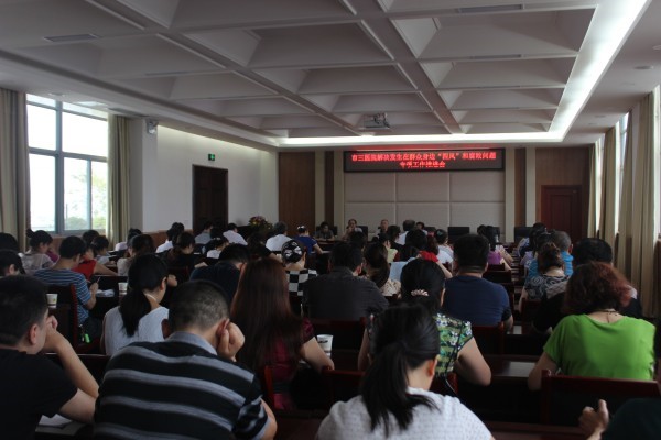 8月31日下午,自贡市三医院组织召开了解决发生在群众身边的“四风”和腐败问题专项工作推进会,医院班子成员、中层管理干部90余人参会。