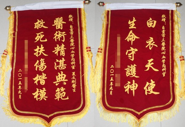 “白衣天使 生命守护神”、“医术精湛典范 救死扶伤楷模”,这是80岁患者戴某及其家属对市三医院心血管内科全体医护人员及科副主任夏文刚的赞誉。9月10日上午,写有以上字样的两面鲜红锦旗送到了三医院党委办公室。“我父亲住院期间,得到了科室医护人员的细心照料,他们尽心尽责的救治让我们做子女的很感动。”戴某儿子说道。
