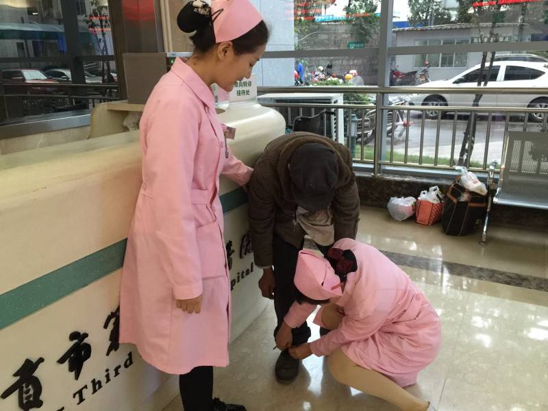11月24日上午, 91岁的杨大爷从沿滩区永安镇来到市三医院,这一天,是她老伴儿出院的日子。“我是来接我老伴儿出院的,你们知道她在哪儿吗?我怕她身上钱不够,给她送钱来了。”在医院病员服务中心,杨大爷掏出一叠钱对护士黄清聪说道。