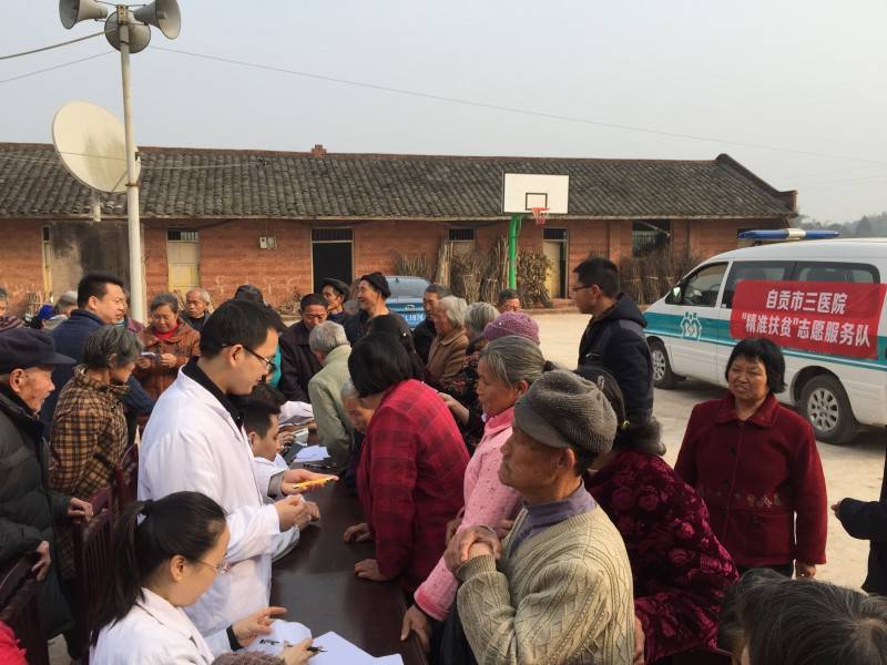 为深入贯彻落实精准扶贫工作,在3月5日雷锋日即临之际,自贡市三医院组织精准扶贫工作医疗专家及志愿者服务队前往帮扶的贡井区牛尾乡骑龙村开展义诊、访视活动。3月1日上午一早,由医院消化内科、外科、眼科专家组成的医疗服务队进村入户,免费为村民们测量血压,开展健康咨询。