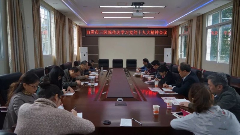 10月30日下午5点,自贡市三医院院长张培森参加市委传达学习党的十九大精神大会后,立即回院组织召开专题学习会议传达学习贯彻市委会议精神,医院党委中心组成员、各党支部书记及相关职能科室负责人参加了专题学习会议。