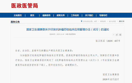 第三条国家卫生健康委负责全国医疗机构抗肿瘤药物临床应用的监督管理。