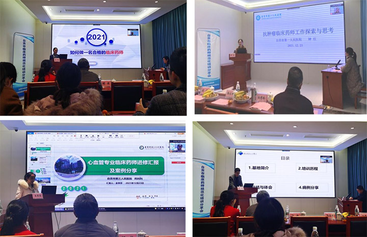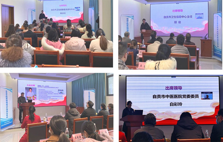 2021年12月23日,由自贡市药学会、市药事质控中心、市中药药事质控中心主办,市第三人民医院、市中医医院承办的自贡市临床药师规范化培训分享会在市中医医院卧龙湖医院圆满举行。市卫生健康委医政科科长杨永钊,市卫生信息中心主任胡俊,大会主席、市药学会会长徐蜀远莅会并讲话。来自市县级医院的7名优秀临床药师分享了各自的规培学习经验。会议线上线下同步举行,现场近50人参会,线上约30人参会。