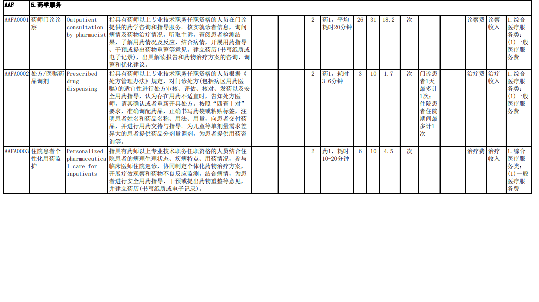 国家层面首次纳入药师门诊诊察、处方/医嘱药品调剂、住院患者个性化用药监护3个药学服务收费项目。