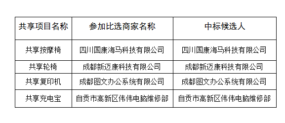 附件1:自贡市第三人民医院共享设备服务项目比选结果