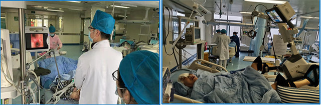 重症医学科设立一病区7张病床,二病区7张床,隔离单间病区7间(单人间4张,双人间6张),配置多功能监护仪24台,西门子、德尔格, Avea , Bipapvision,V60等有创、无创、转运呼吸机20余台,震荡排痰机,心脏除颤仪,床旁快速检测系统( POCT ),高流量吸氧机,纤维支气管镜,亚低温治疗仪,床边 B 越机,各种做量泵、容量泵、床旁持续血液滤过机、空气波压力治疗仪,防压力性损伤等先进的医疗设备。