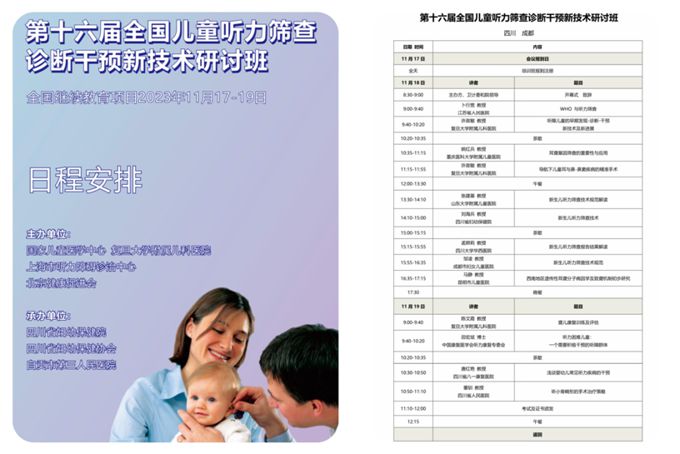 2023年11月17日至11月19日由复旦大学附属儿科医院(国家儿童医学中心)、上海市听力障碍诊治中心、北京健康促进会主办;四川省妇幼保健院、四川省妇幼保健协会、自贡市第三人民医院承办的全国继续教育项目:《第十六届全国儿童听力筛查诊断干预新技术研讨班》在成都圆满召开。