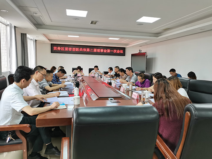 2021年5月27日上午,在自贡市第三人民医院西区会议室召开贡井区紧密型医共体第二届理事会第一次会议。