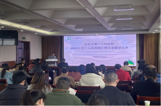 2023年度个人所得税综合汇算于2024年3月1日开始申报,为使广大干部职工进一步了解个人所得税政策及个税汇算APP实践操作,切实保障职工利益,医院积极协调并且取得贡井区税务局支持,3月6日下午15时,会议由蒲永茂书记主持,面向全院职工开展了“2023年度综合所得个税汇算政策辅导宣讲”。