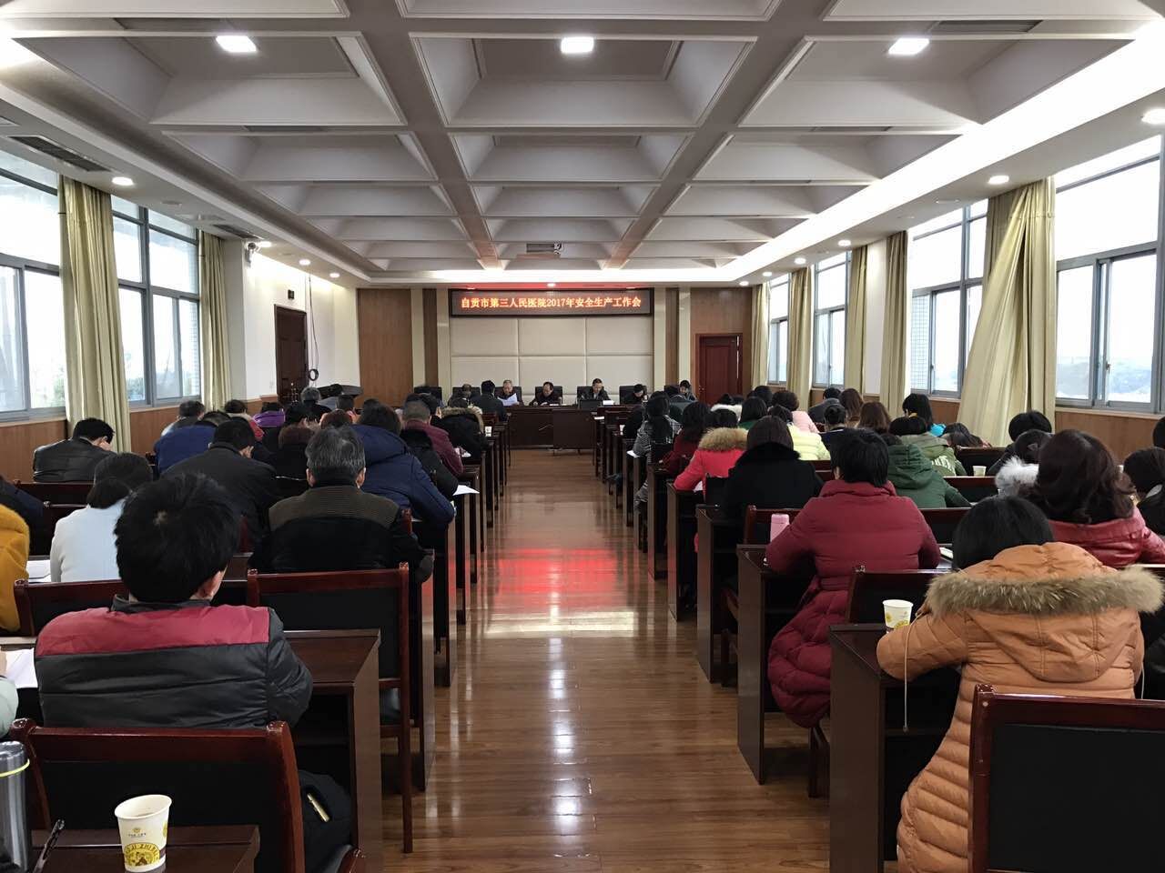 自贡市三医院为进一步提高安全生产工作水平,确保正常工作秩序,强化主体责任,于3月13日下午召开了医院2017年安全生产工作会,分管副院长安排布置了《2017年安全生产工作意见》(简称《工作意见》),院长与科室负责人签订了《2017年安全生产工作目标责任书》(简称《责任书》)。