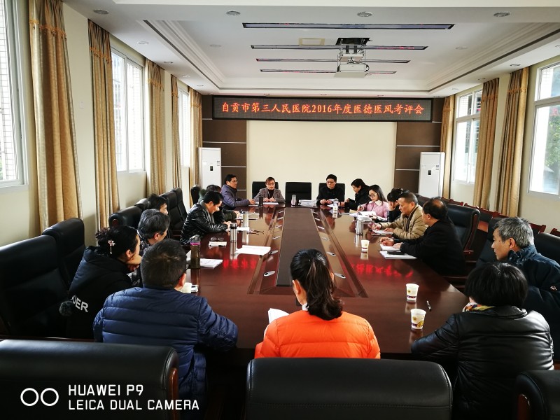 为不断加强医德医风建设,促进广大医务人员遵纪守法、廉洁行医、文明优质服务病员群众,近日,自贡市三医院组织召开医德医风考评委员会会议,对2016年度医务人员医德医风情况进行了考评。