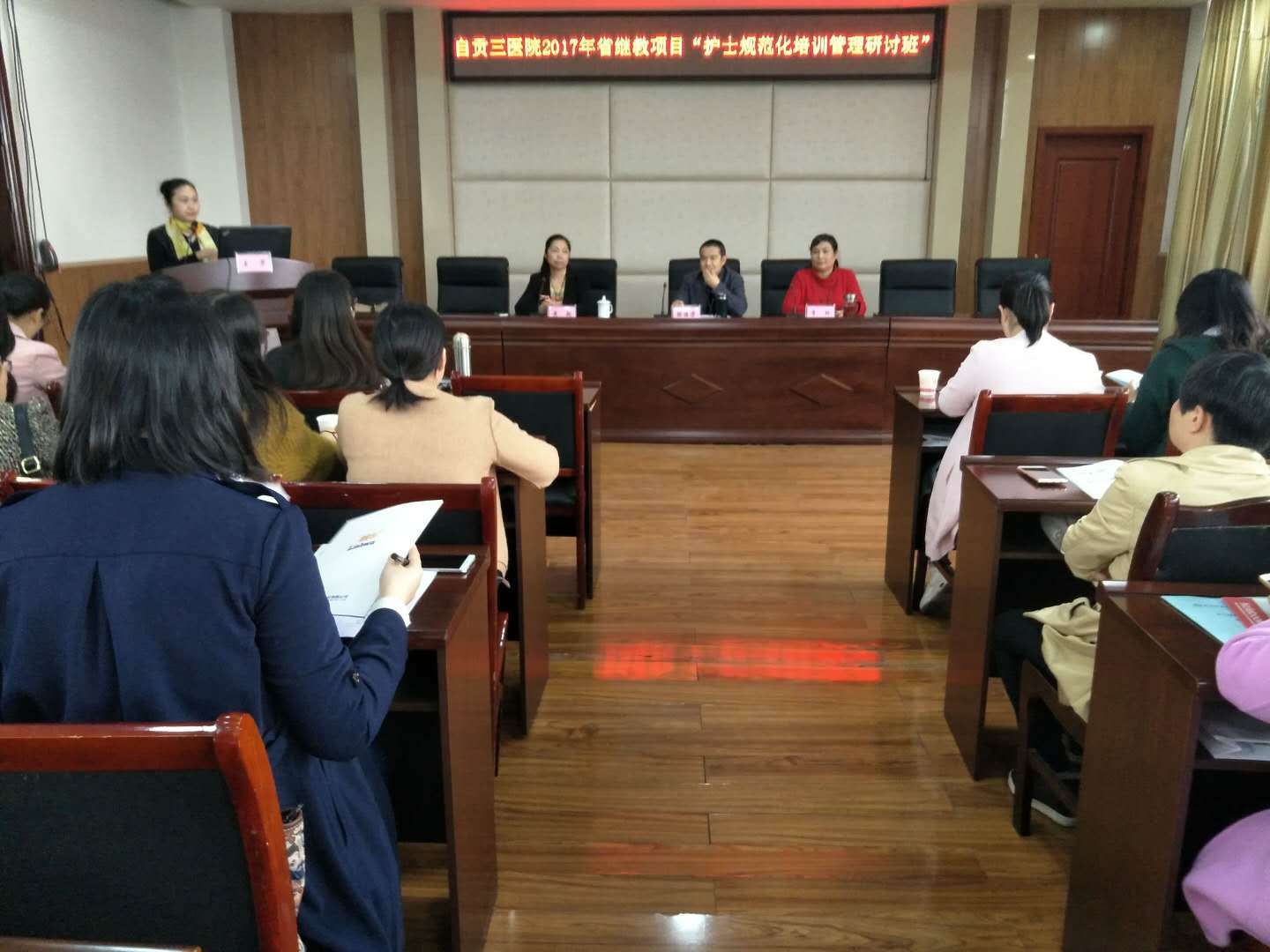 自贡市三医院为深入推进护士规范化培训,于11月16日下午成功举办了省级继教项目:护士规范化培训管理研讨班。来自全市兄弟单位的150余名护理人员参加了培训,自贡市三医院徐海荣副院长做了重要讲话,希望通过专题培训,提高我市整体教学水平,更好地做好护士规范化培训工作,为社会培养更多的优秀人才。