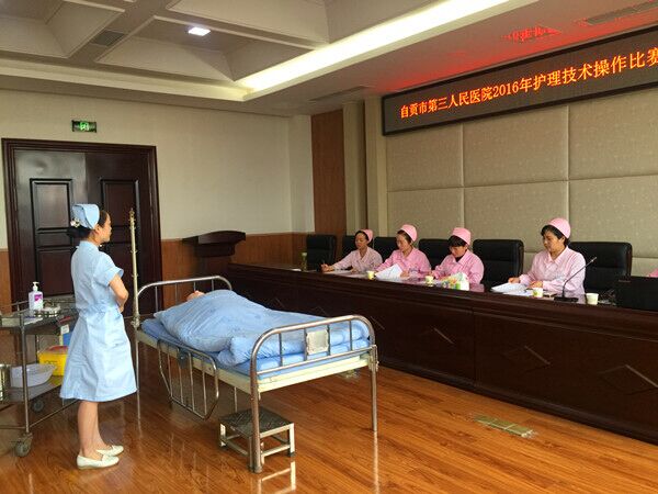 在“5.12”护士节来临之际,自贡市三医院于4月27日由护理部和工会联合举办了护理操作技术比赛,以此纪念和庆祝护士节。全院护理人员代表参加、观摩了本次比赛。
