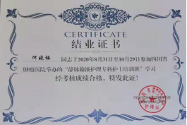 2016年取得护师资格证书,2017年参加医院伤口造口专科培训顺利结业,2020年顺利通过静疗专科护士培训......路漫漫其修远兮,何晓梅一直勤奋学习、努力求索。为了提高科室专科护理水平,她还在科室积极承担了静疗相关工作,包括:PICC置管及维护、输液港维护、病人疾病健康宣教等工作。