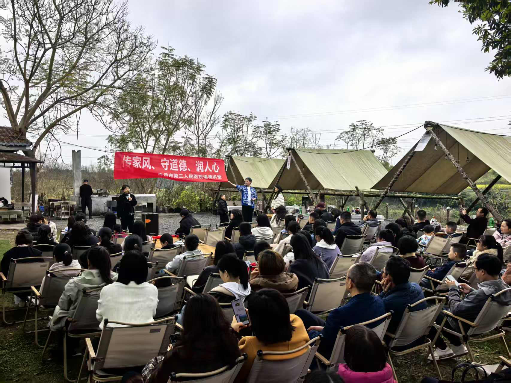 为深入贯彻落实习近平总书记关于注重家庭家教家风建设的重要论述,自贡市第三人民医院创新举办家庭家教家风主题道德讲堂,将节日庆祝与“立德树人”的根本任务紧密结合。医院职工、家属及职工子女共140余人齐聚户外草坪,以蓝天为幕、绿茵为席,老中青幼四代同堂,在春风中共同接受了一场美德与温情的洗礼。
