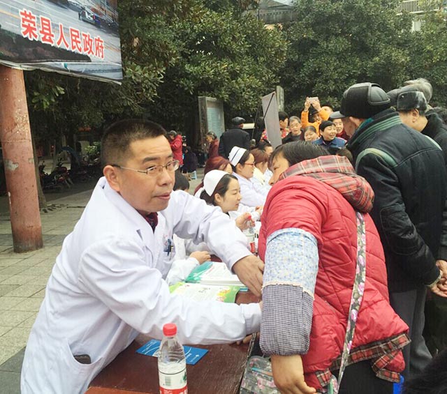 图四:3月23日,自贡市三医院组织医护人员到荣县双古镇开展义诊活动