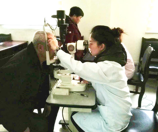 图三:3月17日,自贡市三医院眼科医护人员到马吃水社区开展免费白内障筛查