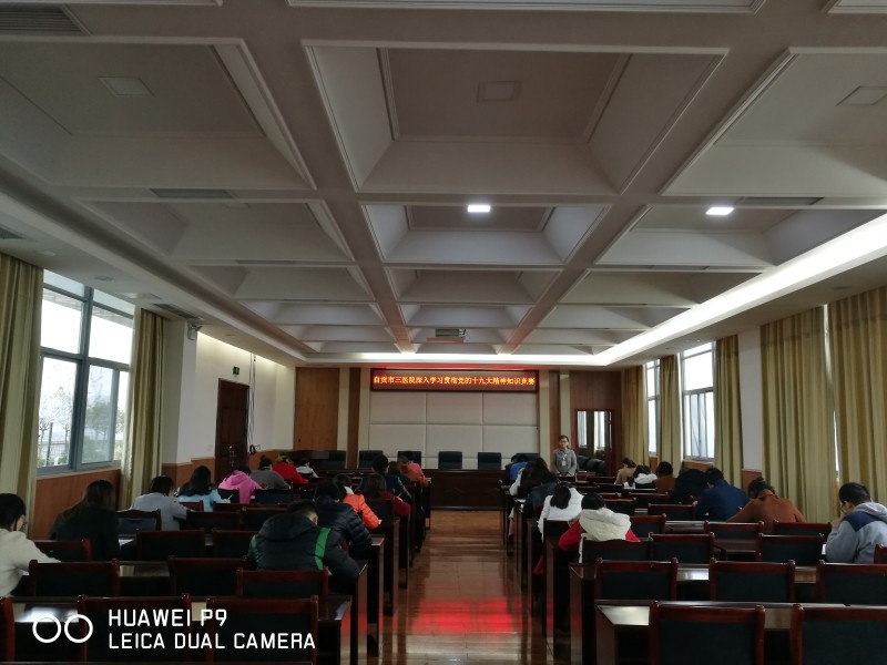 为学习好、宣传好、贯彻好党的十九大精神及新党章,进一步促进党员和干部职工深刻领会十九大精神深刻内涵和重大意义,把握十九大精神实质,11月21日下午,自贡市三医院党委按照市卫计委的部署在医院3号楼会议厅举办了党的十九大精神知识竞赛,来自各党支部的30名党员、入党积极分子及入党申请人组成的选手参加了知识竞赛。此次知识竞赛为闭卷笔试,将选拔3名选手代表医院参加自贡市卫生计生系统党的十九大精神知识竞赛复赛。